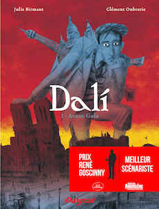 PRIX RENÉ GOSCINNY – MEILLEUR SCÉNARISTE: Julie Birmant pour « Dalí – 1 – Avant Gala ». Dessin de Clément Oubrerie (Dargaud). Nous sommes en 1930 dans l’atelier de Picasso de la rue de la Boétie. Arrive Éluard, radieux. Dali dîne enfin avec sa femme, Gala. « Éluard n’est pas jaloux ? – Non. », répond le poète. Picasso est sidéré et met en garde son ami : pour lui, Salvador Dali, du haut de ses 25 ans, est un drôle de coco, vieux et jeune à la fois, un peintre au talent sidérant, à l’intelligence vrombissante, prêt à tout… Et Picasso de croquer Dali en chat Mephisto, un chat qui prend vie, se frotte aux jambes d’une Gala qui se baisse et le caresse, et le chat aussitôt de l’emmener avec lui dans son passé, sa jeunesse, et pour commencer à Figueras, ville de Catalogne.