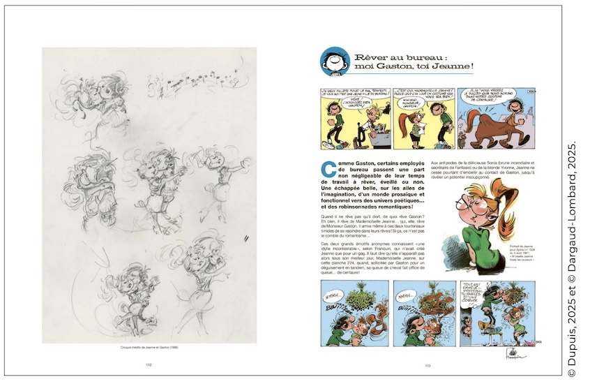 Témoin des (r)évolutions de la société, Gaston a toujours été en avance sur son temps, du slow working aux prises de conscience écologique, tout en ne cessant de pointer les contradictions de la société de consommation, l’asservissement de la vie de bureau et la tyrannie du stress. Composé de planches et de dessins préparatoires, cet ouvrage de 152 pages revient sur les secrets de fabrication de Franquin et de son successeur Delaf, avec un entretien et des esquisses inédites.