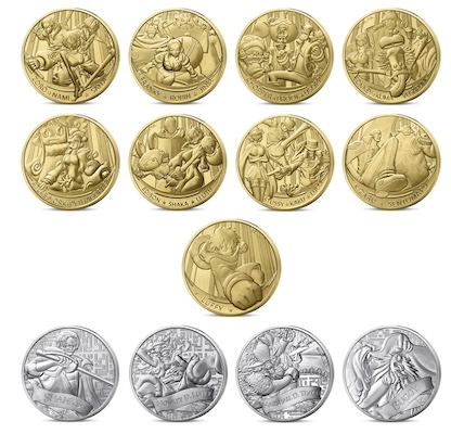 Après une première collection en 2024, La Monnaie de Paris propose 13 nouvelles mini-médailles de la saga « One Piece » vendues en pochette aléatoire. Dans chaque pochette (5,50 euros), le collectionneur trouvera donc une médaille présentant un ou des personnages de l’arc Egg Head: neuf dorées classiques (Luffy, Bonney-Kuma-Vegapunk, Zoro-Nami-Sanji, Edison-Shaka-Lilith, Franky-Robin-Jinbe, Kizaru-Sentomaru, Stussy-Kaku-Lucci, Chopper-Brook-Usopp, Atlas-York-Pythagoras) et quatre plus rares de couleurs argentée consacrées au quatre empereurs (Luffy, Shanks, Marshall D. Teach, et Buggy). Ces dernières ont bénéficié d’un tirage limité à 15.000 exemplaires.