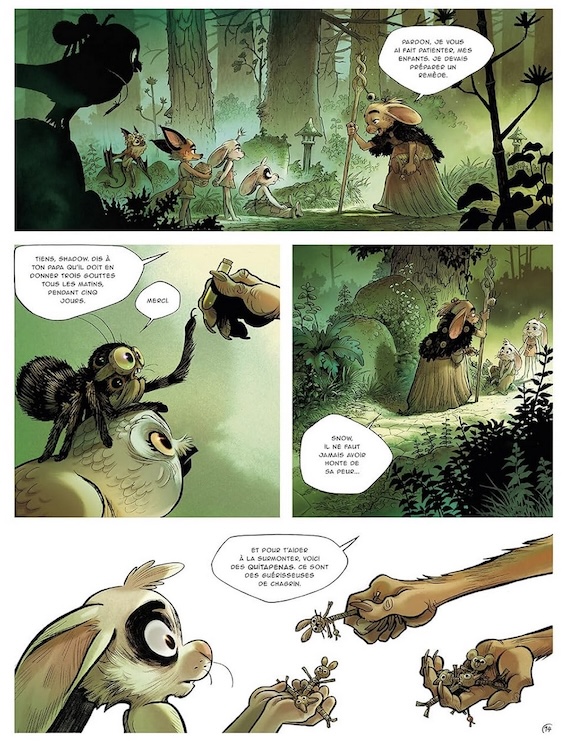Graphiquement, c’est vraiment très beau, les personnages anthropomorphiques sont ultra mignons, le trait de Florent Sacré est rond et expressif et les décors forestiers sont délicats, détaillés et lumineux.