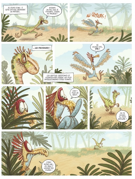 Cela pourrait faire fort peu mais il faut bien avouer que ces anti-héros sont si attachants que l’on parcourt les planches avec plaisir. Il faut dire que Clotilde Goubely, qui signe ici sa première bande dessinée, met en scène des dinosaures aux trognes sacrément tordantes avec leurs gros yeux ahuris et leurs formes biscornues et dont on saisit parfaitement les expressions. On aurait cru l’ère jurassique moins joyeuse! Quelques pages pour en savoir un peu plus sur certaines espères de dinosaures viennent conclure ce premier épisode.