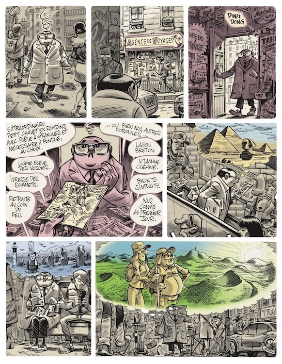 Léon est un petit bonhomme attachant avec lequel Arnaud le Gouëfflec s’amuse gentiment. Les saynètes s’enchainent, formant une succession de situations cocasses et de quiproquos qui ne cessent d’empêcher les deux personnages de se trouver enfin… Ce n’est pas très original mais c’est léger et rafraîchissant, la tendresse et la poésie qui se dégagent fonctionnant assez bien. Cette comédie romantique reste néanmoins surtout portée par ses planches ultra détaillées mais très lisibles, son trait caricatural et les cases d’un gris monochrome qui se teintent de couleurs vives lorsque la vie de Léon s’illumine.