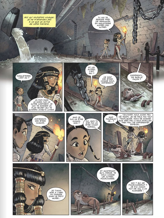 Bande dessinée jeunesse prévue en deux tomes sur le thème de l’Egypte ancienne que les enfants apprécient particulièrement, « Tâtuvatèt » est une aventure trépidante parsemée ici et là de petites infos sur le mode de vie, la culture et les légendes de l’Antiquité avec des personnages hétéroclite, rigolos et attachants plongés au coeur du monde contemporain. Le fait que Carole Trébor qui a signé la BD « Paloma » soit à l’origine historienne y est d’ailleurs sans doute pour quelque chose. Le trait réaliste de l’Italien Gabriele Bagnoli, fin et doux, est également charmant et expressif.