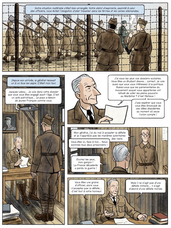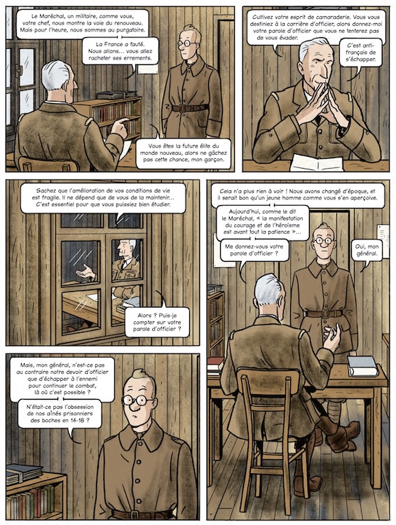 François Warzala. Après notre collaboration sur l’histoire de la Ve République, nous avions envie de continuer à travailler ensemble. J’avais plutôt envie d’une fiction mais Thomas, qui avait déjà l’idée de raconter l’histoire de son père prisonnier pendant la Seconde guerre mondiale, m’a proposé de le faire en BD. Comme c’est une période qui m’intéresse et que j’aime bien quand un personnage se retrouve dans une situation hors norme, l’idée m’a plu et on s’y est mis.