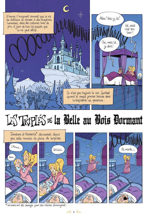 Ils se marièrent et eurent beaucoup d’enfants. « Et ils eurent beaucoup d’emmerdes », corrige cet album, qui raconte comment les héros et héroïnes des contes de notre enfance sont devenus parents. Avec son dessin très cartoon et son humour décalé, Mab donne un sérieux coup de jeune au petit chaperon rouge, Boucle d’or ou Peter Pan.