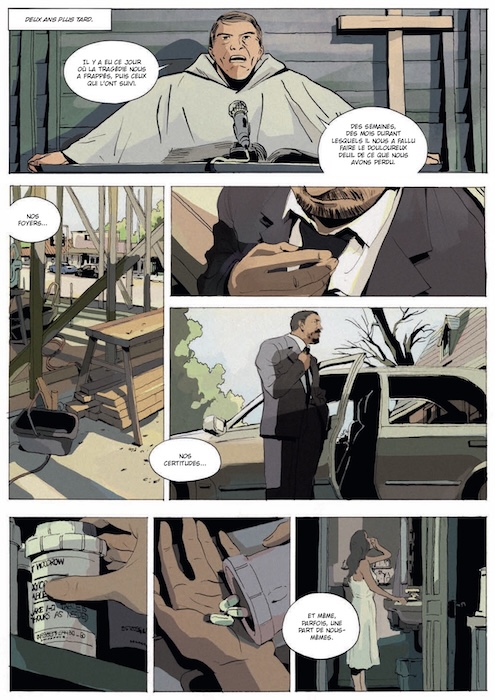 Ce premier tome montre comment des personnes fragilisées peuvent être séduites par le discours d’une communauté. On sent une volonté de comprendre ces mécanismes, sans tomber dans le jugement. Était-ce une intention centrale pour vous? M. Oui. La manipulation mentale est un sujet qui m’a toujours intrigué. Comment un individu seul peut-il faire perdre à des gens, à priori saints d’esprit, leur libre-arbitre, tout esprit critique ou la liberté de faire ses propres choix ? Par quel biais, quels mécanismes liés au fonctionnement de notre cerveau, ces gourous parviennent-ils à de tels degrés d’emprise ? C’est ce que j’ai cherché à comprendre, ce que j’essaye de décortiquer à travers les deux tomes que formeront cette histoire. Le premier aborde davantage la première phase du processus, celle de séduction. Le deuxième portera davantage sur son pendant destructeur.
