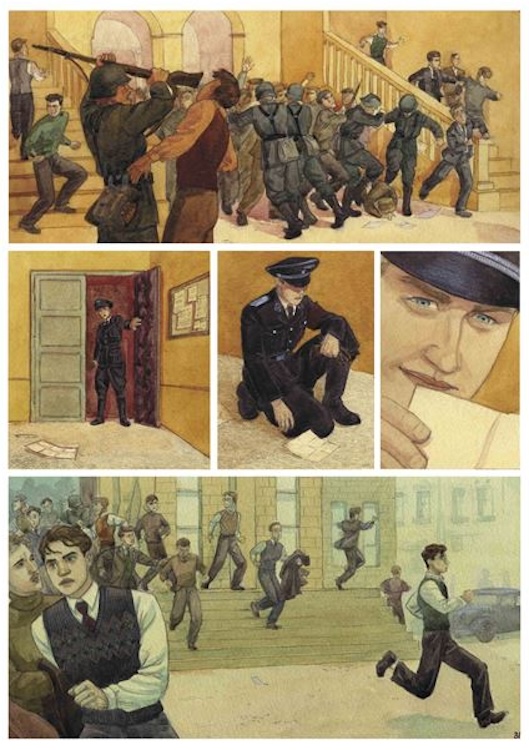T.G. J’ai toujours adoré ses couleurs directes et les émotions qu’elle pouvait donner aux visages de ces personnages. Travailler sur la Seconde Guerre mondiale l’intéressait. C’était joué !