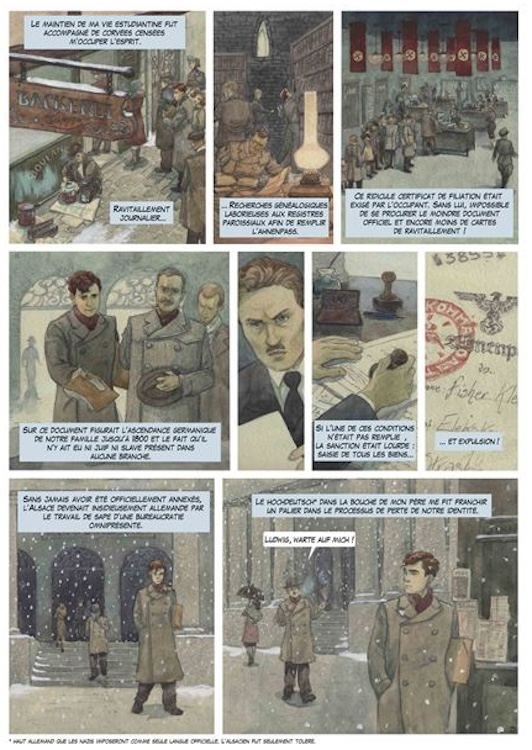 T.G. C’est tout simplement ainsi que me l’a rapporté ma grand-mère. Et c’est ainsi que j’ai compris, enfant, que nous n’étions pas nazis dans la famille, juste Alsaciens. La première fois que je m’étais interrogé, c’est adolescent, en parcourant de vieux albums photos et en découvrant certains de mes aïeux en uniformes allemands. J’ai toujours bien aimé l’histoire et je savais déjà reconnaître un uniforme. C’est ainsi que ma grand-mère a commencé à me raconter ce qu’était un malgré-nous. Donc oui, « ce détail » était important et je l’ai bien marqué dans la série.